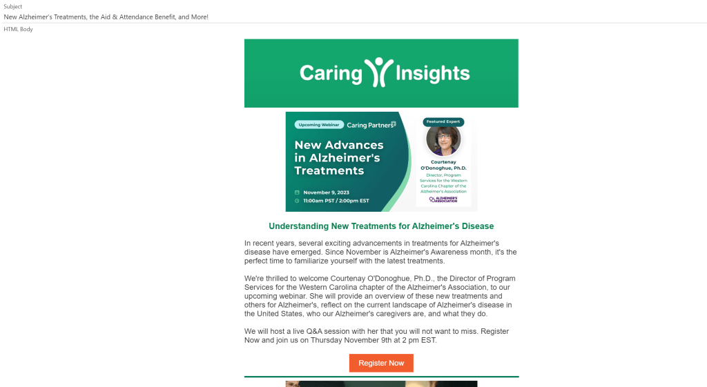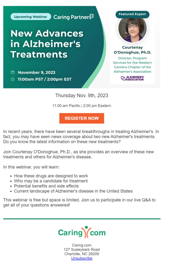 - Webinar collaboration: The Alzheimer’s Association provided an expert for the webinar and supported the campaign by emailing their contacts and hosting the webinar recording on their site.